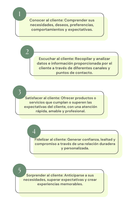 • Definir una visión clara y compartida sobre el propósito y objetivos de la organización respecto al cliente.